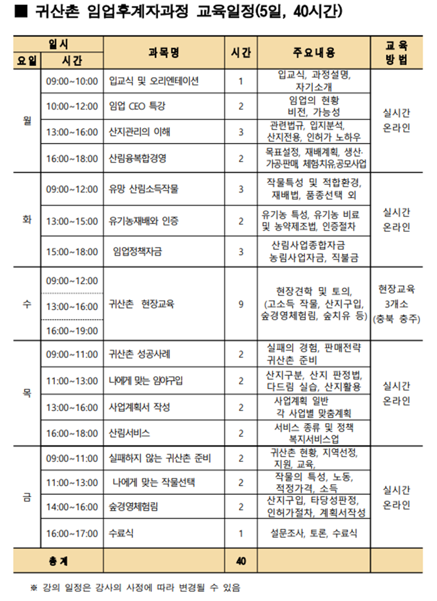 2026년 귀산촌임업후계자과정 4기